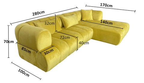 Temo Luxury Flannelette Curved Chaise Sofa Sectional Couch