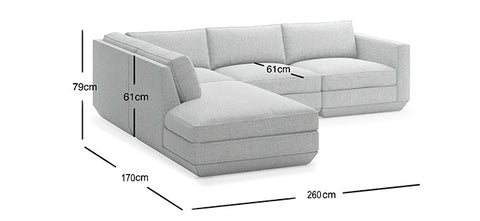 • 4-Seater Sofa: 260W×170D×79H cm